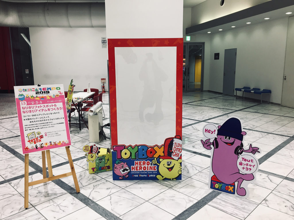 大阪の南港にあるATCにて開催された「咲洲こどもエキスポ2019」に出店させていただける機会がありましたので、フォトスッポットの制作をさせていただきました。 箱の中に入って「おもちゃ」になりきるをテーマにデザインを制作、当日は現場にも行かせていただき数多くのお客さまから嬉しいお声をいただけました。